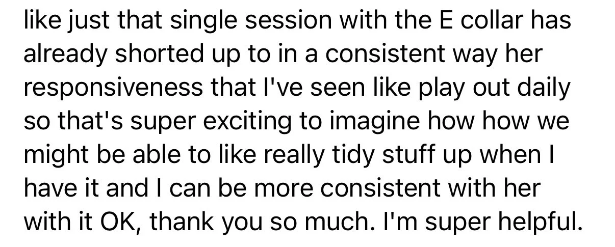 I received this update 7+ months after our original sessions. These messages made my heart so happy. Remi was a velcro dog that struggled with some mild resource guarding issues. His owner worked hard on restructuring their relationship and sharpening up his obedience. We taught him an off switch and helped him understand boundaries. During our sessions, having Remi hold a stay while his owner moved into another room was far too tough. I’m so proud of this team!!